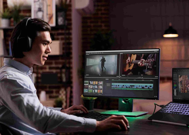 Video editing is the art of transforming raw clips into powerful, engaging content through trimming, color grading, transitions, sound design, motion graphics, and storytelling.